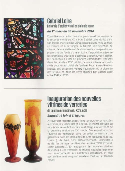 Programme des Expositions et des Evènements au Musée du Verre de Conches en Ouche : Année 2014