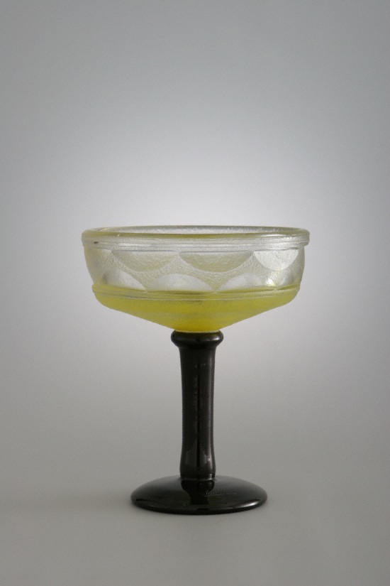Nouveautés à Collection Schneider lors de l'Exposition " Verreries Schneider Glas des Art Déco - Glashütte Gernheim Petershagen (Allemagne) : 25 Janvier - 3 Mai 2015 : " Coupe jaune dichroïque "
