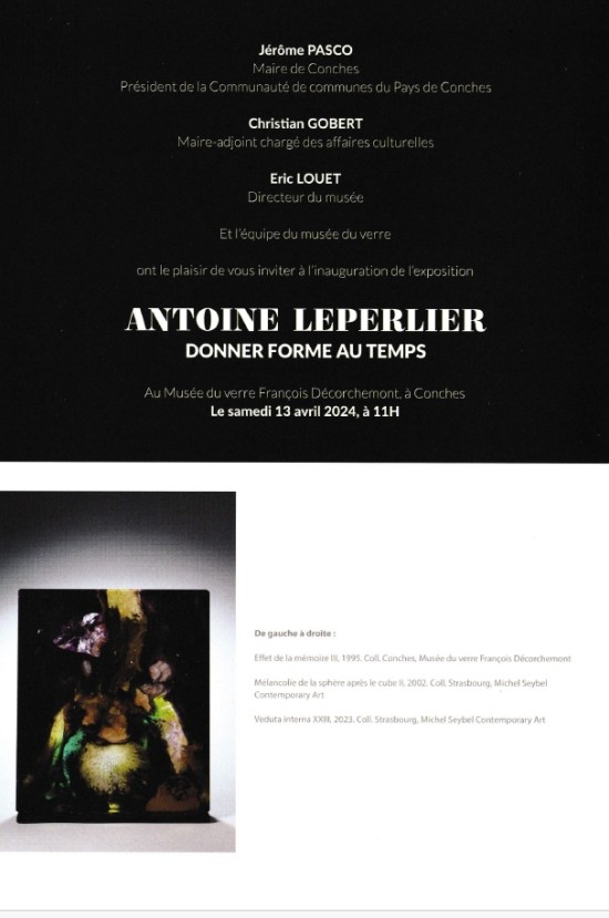 L'exposition " Antoine Leperlier - Donner Forme au Temps " se déroule du 13 Avril au 1 Décembre 2024 au Musée du Verre François Décorchemont de Conches.