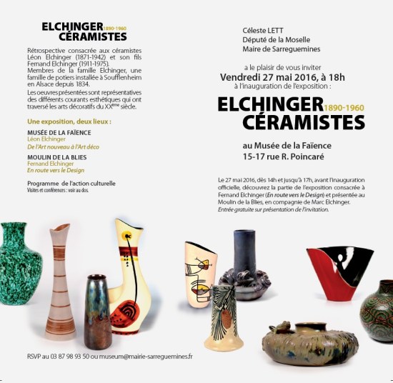 Visuel (2) de l'Invitation - Programmes " Elchinger Céramistes 1890-1960 " Sarrreguemines 2016
