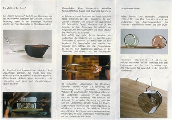 Visuel de la plaquette : " Edition Gernheim " - Glashütte Gernheim Petershagen LWL (Allemagne) 2015