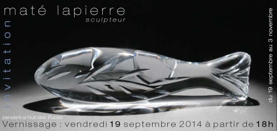 L'inauguration et le vernissage de l'exposition " Maté Lapierre Sculpteur " aura lieu le vendredi 19 Septembre 2014 à partir de 19H00 à la Galerie Choses et Autres Choses au Marché Biron, Stand 15 pendant l'Evènement " La Route du Chineur " organisé par le Maché Biron.