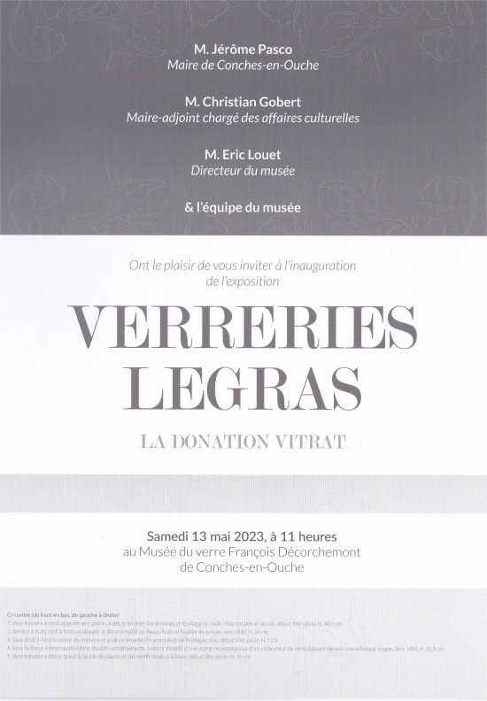 Visuel extrait 1 de la Plaquette Inauguration " Verreries Legras - La Donation Vitrat " - Musée du Verre François Décorchemont - Conches 2023