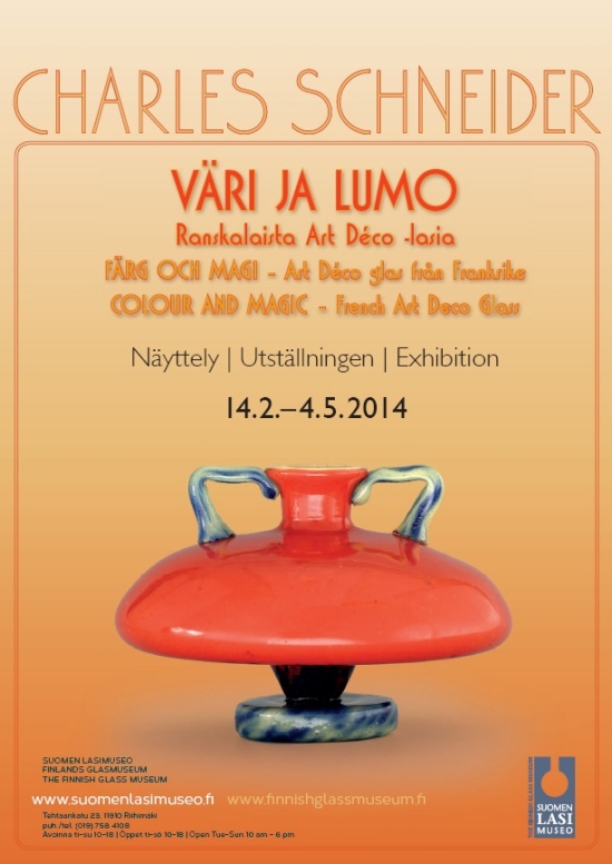 14 Février - 4 Mai 2014 : Exposition " Schneider Colour and Magic – French Art Deco Glass " au The Finnish Glass Museum Riihimäki (Finlande)